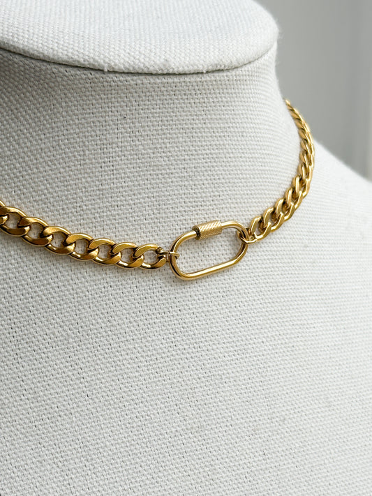 Heavy Curb Chain Carabiner Charm Keeper Necklace